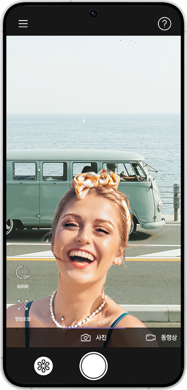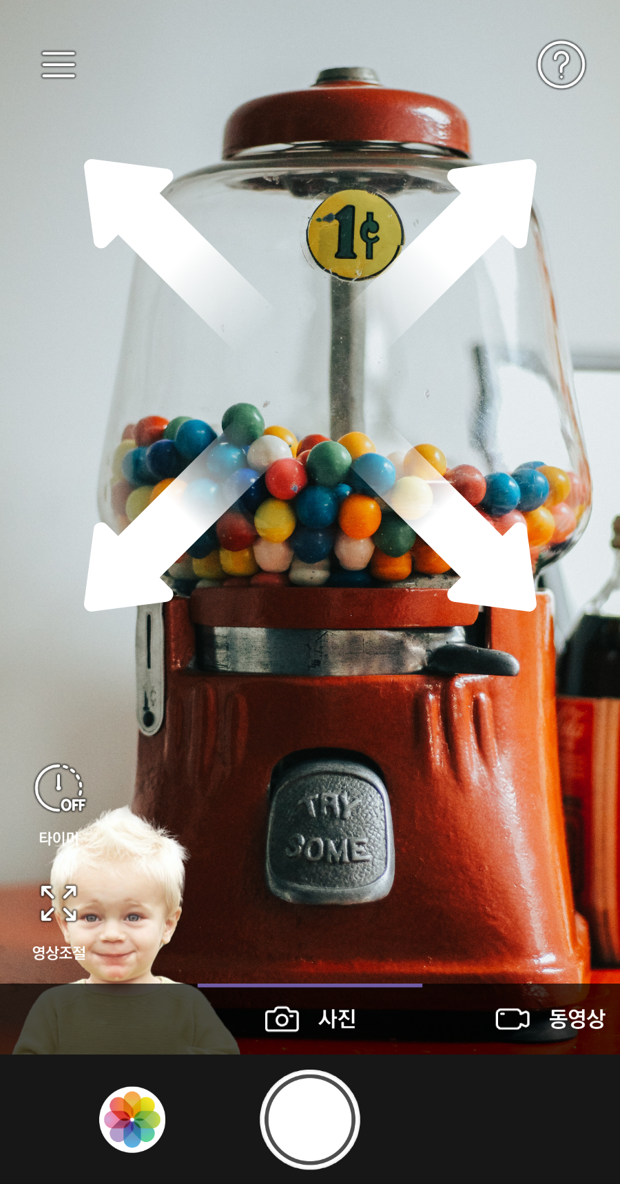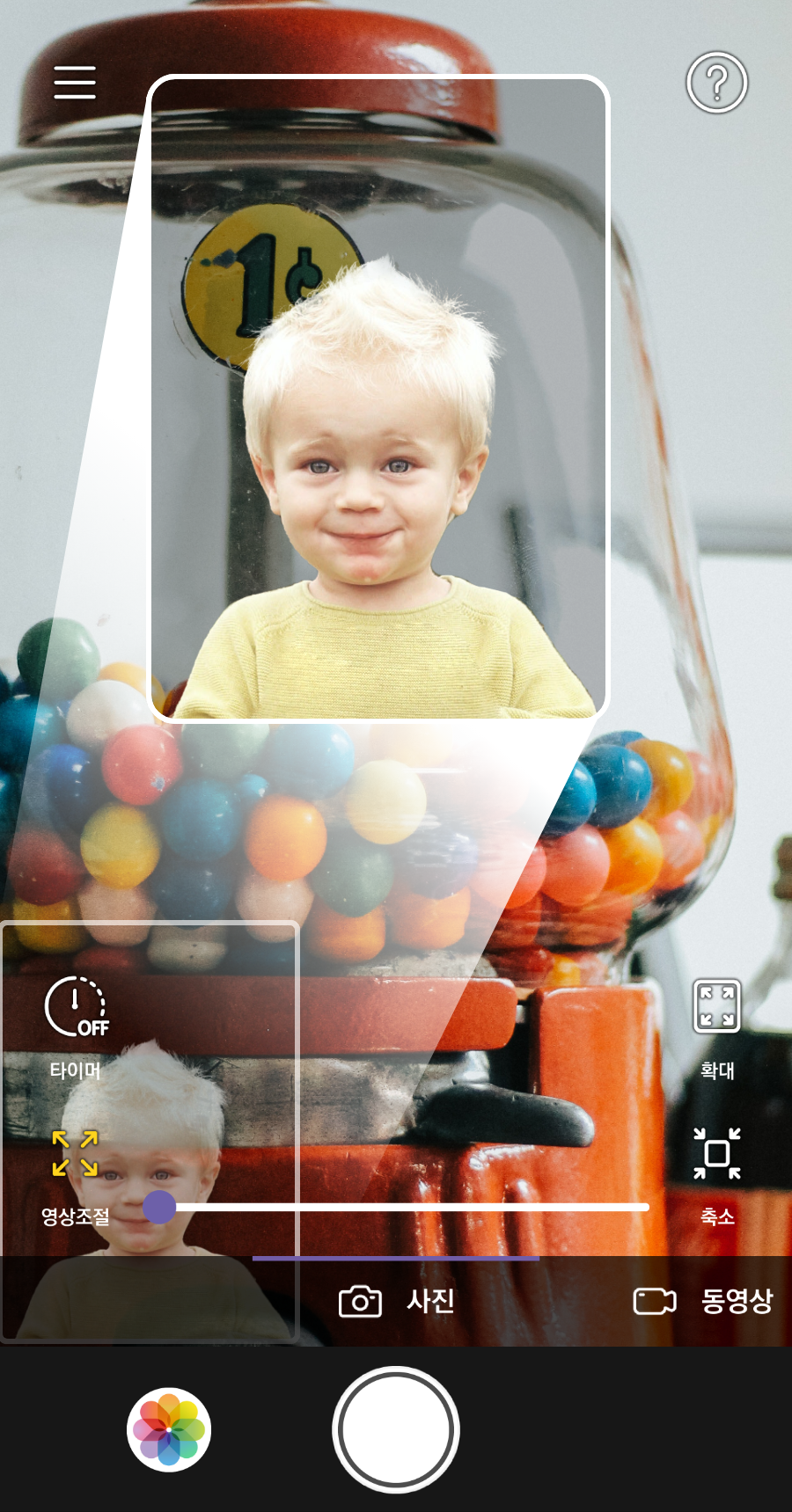 후방 카메라로 찍는 배경의 초점을 맞추고 원하는 구도에 맞춰 확대합니다.