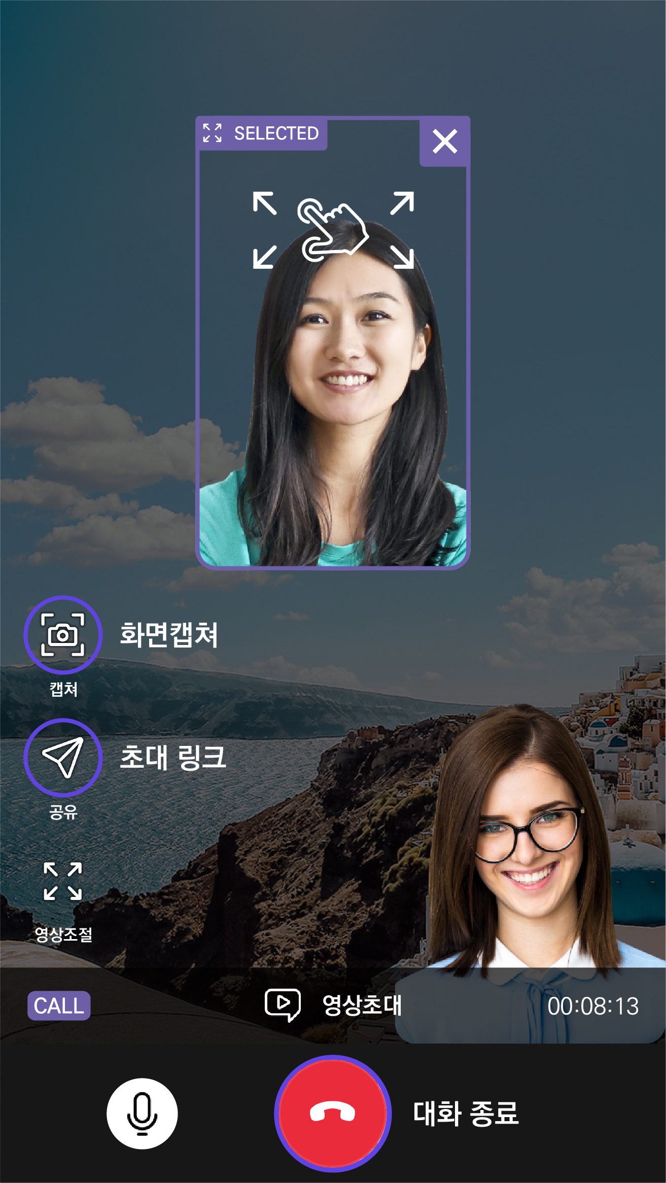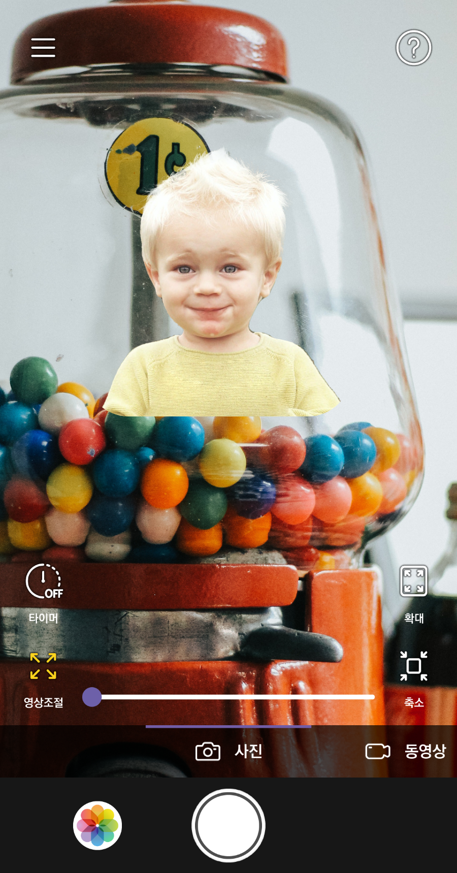 mingleZ에서는 후방카메라에 비치는 배경과 전방 카메라로 찍는 내 영상의 크기와 위치를 자유롭게 조절하여 배경과 원하는 구도를 잡아 사진 또는 동영상 촬영이 가능합니다.