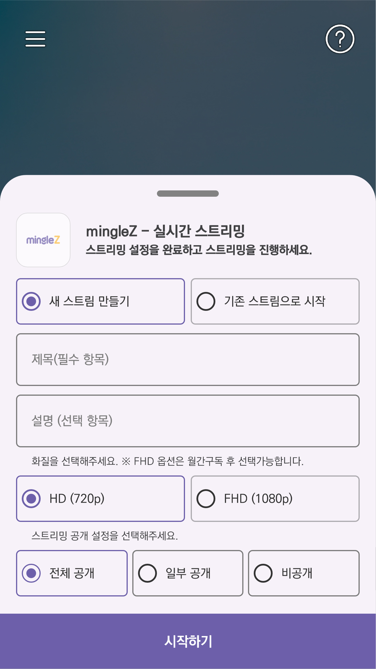 스트리밍을 시작하기 앞서 스트림 설정을 할 수 있습니다.