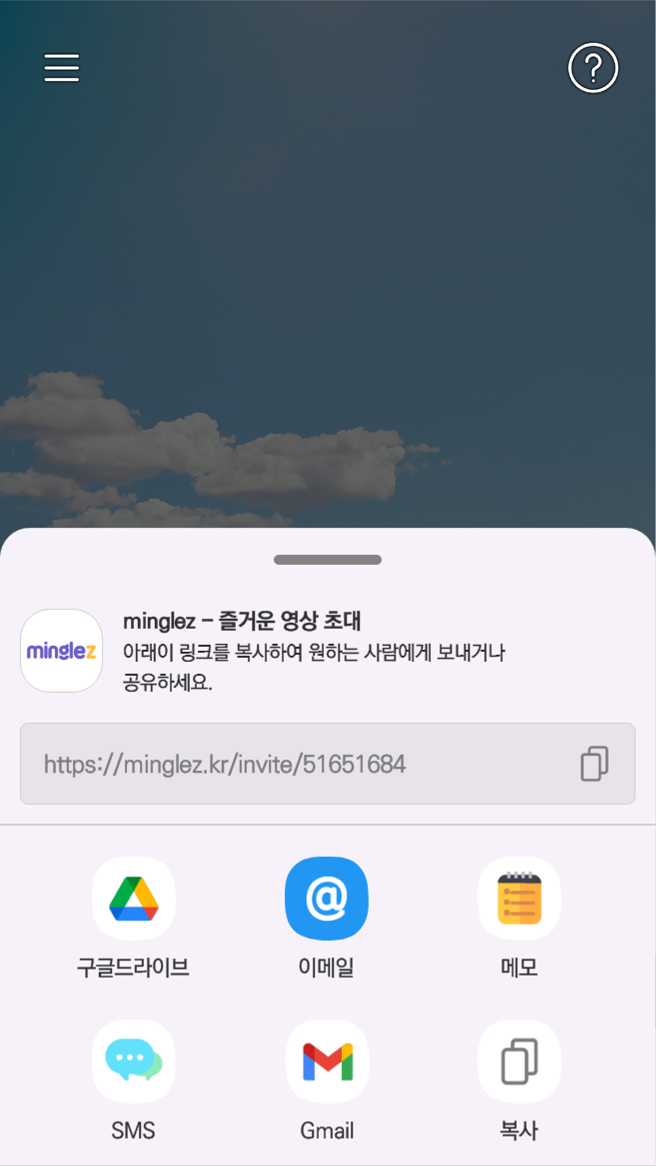 영상초대를 시작하면 영상통화에 참여할 수 있는 링크를 생성합니다.